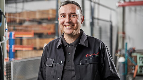 Ich bin der der jüngste von drei Geschwistern. Die sind Ingenieure und auch ich wollte immer vorankommen. Ich möchte immer gut sein, in dem was ich tue. Deshalb komme ich auch mit der Doppelbelastung Abteilungsleiter und Ausbilder sehr gut zurecht. Ich mag es, auf die individuellen Bedürfnisse meiner Azubis einzugehen, mein Wissen weiterzugeben und ihnen Perspektiven zu eröffnen. Ich freue mich jedes Mal, bei meinen Azubis die enorme Entwicklung vom unerfahrenen Jugendlichen zur gestandenen Fachkraft zu sehen. Ich möchte meine Leute entwickeln und begeistern – und ich möchte, dass sie Azubis so gut wie möglich abschließen.
