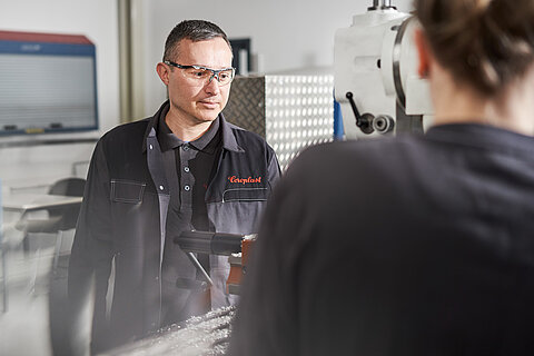 Bei unserem Beruf geht es darum, die Maschinen und Anlagen zu warten, Fehler frühzeitig zu erkennen und vorbeugend instand zu halten. Das heißt, wir kümmern uns darum, dass die Produktion läuft. Deshalb arbeiten die Azubis zu etwa 70 Prozent direkt an den Maschinen; die restliche Zeit entfällt auf das Anfertigen und Reparieren von Bauteilen. Dafür benötigen sie Fähigkeiten wie Drehen, Fräsen, Schleifen oder Schweißen – eben die verschiedensten Fertigungsverfahren. Es gehört aber auch Wissen aus den Bereichen Hydraulik und Pneumatik dazu. Parallel dazu besuchen die Azubis die Berufsschule und lernen die erforderliche Theorie. Das erste Jahr der Ausbildung findet im BZI in Remscheid statt – dort machen die Azubis die Metallgrundausbildung. So vergehen die 3 bis 3,5 Jahre Ausbildung wie im Flug.