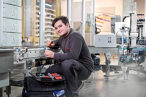Up until now we have only had male apprentices with us in this relatively new apprenticeship. But, of course, we would be delighted to also have some female applicants. We have actually already trained a female electrical engineer specializing in industrial engineering. But, on to the second part of your question: the apprentices learn how to maintain complex, automated machines. They see to it that the machines are working properly and that the production operations run smoothly. As plant facilities have become more and more complex in the last few years, the demand for this type of work has increased greatly, making it a great career choice for the future.