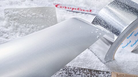 Aluminium-clad insulating materials are mostly used in boiler rooms, air conditioning systems or for other cold- and heat-conducting pipes. During the winter months in particular, it is extremely difficult to bond interfaces, as moisture and cold temperatures make it difficult to maintain adhesive strength. This can be dangerous, especially in areas where stricter fire protection regulations apply.